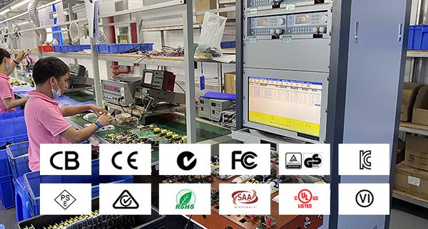 公司產(chǎn)品已通過多項(xiàng)國際和國內(nèi)權(quán)威認(rèn)證,包括:ISO9001質(zhì)量管理體系認(rèn)證;中國CCC認(rèn)證;歐盟CB認(rèn)證、CE認(rèn)證GS認(rèn)證、RoHS認(rèn)證;美國FCC認(rèn)證、ETL認(rèn)證、UL認(rèn)證(UL1310標(biāo)準(zhǔn)、UL60065標(biāo)準(zhǔn)、UL60950-1標(biāo)準(zhǔn));日本PSE認(rèn)證;韓國KC認(rèn)證、KCC認(rèn)證;印度BIS認(rèn)證